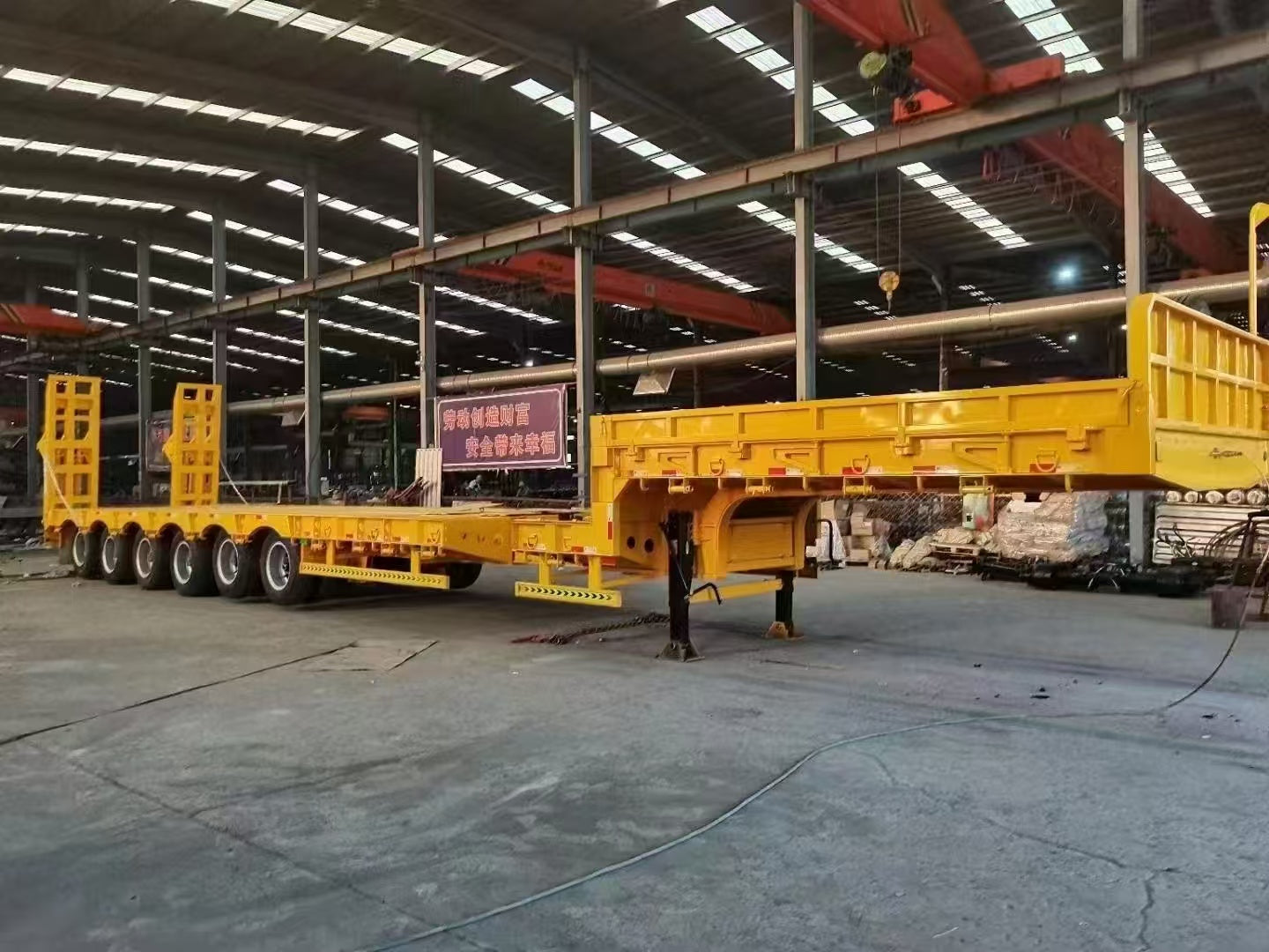 The carrying capacity of different vehicle models varies. Light flatbed trucks can carry 30-50 tons, medium trucks can carry 50-80 tons, and heavy-duty low flatbed semi trailers can carry more than 80 tons (customized according to customer needs). All models are welded with high-strength steel, and the frame undergoes mechanical simulation testing to ensure structural stability under heavy loads, in compliance with national load standards.