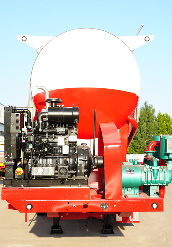 Transport fly ash with a density of 720 kg/cubic meter, total tank capacity of 45 cubic meters, and effective tank capacity of 42.9 cubic meters. The optional top platform structure varies, resulting in different vehicle heights The total length of the tank body of the vehicle is 9850mm, with a maximum cross-sectional width of 2540mm; the minimum diameter is 2008mm, and the overall length of the vehicle without an air compressor unit is 10000mm. The curb weight is 8400kg, and front and rear structures are optional; Optional without air compressor structure; Optional appearance structure; Optional wheel cover style; Number and installation location of optional climbing stairs; Optional tank front and rear intake duct types: one pipe, two pipes, internal pipe; Optional pneumatic and hydraulic support legs; Optional longitudinal beam front and rear structures; Optional power unit type, optional tank body text; Optional body color, optional beam shaped hole structure, optional installation position of tail sign plate, optional tire guard tile style and track style, optional combination light is circular/fog light is square structure, ABS: model: CM2XL-4S/2K (4S/2M); Manufacturer: Guangzhou Kemi Automotive Brake Technology Development Co., Ltd; Protection: The material of the side/rear protective device is Q235, and the connection method is bolt connection for the side lower protective device/welding connection for the rear lower protective device; The cross-sectional dimensions of the rear protective device are 140mm in height, 50mm in width, and 460mm above the ground. The dimensions correspond one-to-one.